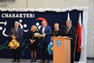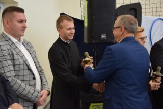 W swoim przemówieniu dyrektor szkoły Andrzej Karpiesiuk podkreślił, że uroczystość otwarcia sali jest świętem wszystkich. Jest również świadectwem, że marzenia się spełniają. Po wielu bowiem staraniach udało się wznieść budynek sali gimnastycznej. „Drodzy uczniowie, ta sala jest dla was. Rozwijajcie zdolności sportowe, zdobywajcie medale, przyjmujcie porażki” – powiedział dyrektor. Zewnętrznym wyrazem wdzięczności były przyznane statuetki „Franciszki”. Przestawiają one patrona szkoły ks. Franciszka Jakuba Falkowskiego. Otrzymały je osoby, które na różnych płaszczyznach wspierali dzieło budowy sali. Wśród nagrodzonych znaleźli się duchowni z bp. Piotrem Sawczukiem na czele, przedstawiciele władz parlamentarnych, samorządowych, oświatowych, służb mundurowych, projektanci i wykonawcy dzieła.