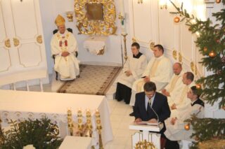 Po Eucharystii uczestnicy spotkania złożyli sobie życzenia i zasiedli przy śpiewie kolęd do wspólnego stołu.