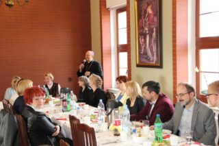Ks. bp Tadeusz Pikus podziękował za życzliwość, jakiej doświadcza od przedstawicieli tego środowiska podczas różnych spotkań i uroczystości. Złożył również świąteczne życzenia zarówno katolikom, którzy mają już okres Wielkanocny, jak też obecnym na spotkaniu prawosławnym, którzy się do niego przygotowują. Zaznaczył również, że cywilizacja jest pracą człowieka, czyniąc sobie ziemię poddaną. Kultura to jest uprawa samego siebie, żeby wydobyć talenty, rozwinąć i dzielić się nimi.