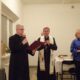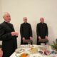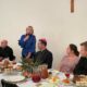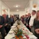 Po eucharystii zebrani udali się do sali parafialnej na drugą część spotkania opłatkowego. Spotkanie przy stole rozpoczęliśmy tradycyjnie czytaniem z Pisma Świętego, po czym bp Piotr złożył życzenia wszystkim obecnym. Przemawiali również asystent DIAK ks. Piotr Wójcik i Prezes DIAK Maria Dzierżanowska. Następnie był czas na przełamanie się opłatkiem i indywidualne życzenia. Było też coś dla żołądka – smaczny poczęstunek przygotowały panie z Kosowskiego Koła Gospodyń Wiejskich. A wiele radości sprawił nam śpiew kolęd przy wtórze gitar, które przywieźli ze sobą członkowie POAK-u w Prostyni.