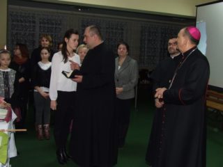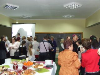 Po Eucharystii w Szkole Podstawowej im św. Jana Pawła II był czas na podziękowania, życzenia świąteczne i łamanie się opłatkiem, nawiązywanie relacji.
