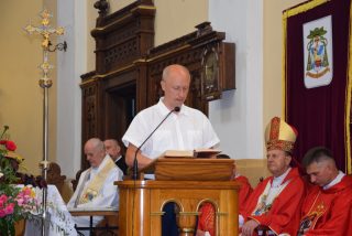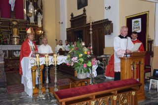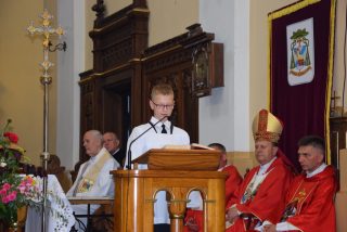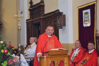 Homilię wygłosił ks. kan. Jarosław Błażejak. wspominając postać ks. Piotra przypomniał patronów uroczystości świętych Apostołów Piotra i Pawła. Jak zauważył, zachwyca świadectwo ich wiary, które złożyli przede wszystkim w momencie męczeństwa. Przytoczył między innymi historię św. Piotra, który uciekając z Rzymu w obawie przed prześladowaniami, spotkał na drodze Chrystusa. Wówczas powrócił do Wiecznego Miasta, aby tam ponieść śmierć męczeńską. Kaznodzieja przywołał również moment męczeństwa św. Pawła. Jak mówi tradycja Święty wypowiedział trzykrotnie imię Jezusa. W miejscu upadku ściętej głowy wytrysnęły trzy fontanny.