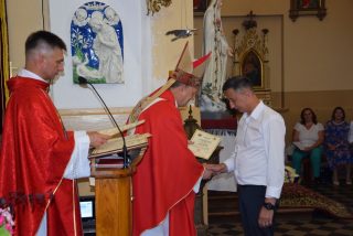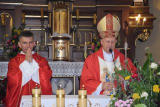 Ks. bp Tadeusz Pikus 29 czerwca 2019 r. w kościele parafialnym w Zembrowie przewodniczył Mszy św. z okazji 25. rocznicy święceń kapłańskich ks. kan. Piotra Arbaszewskiego.