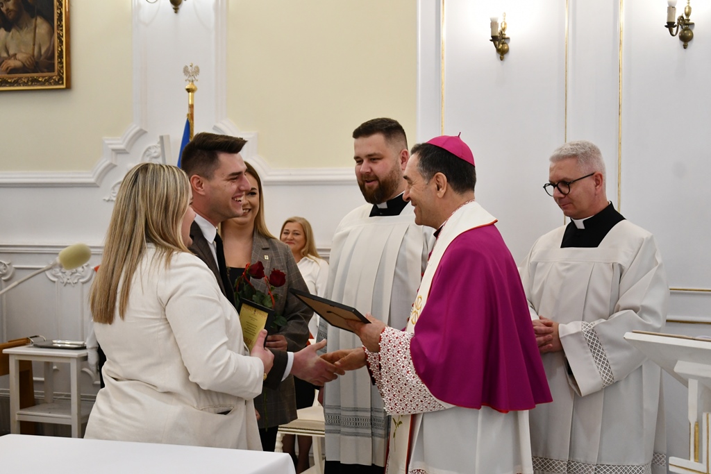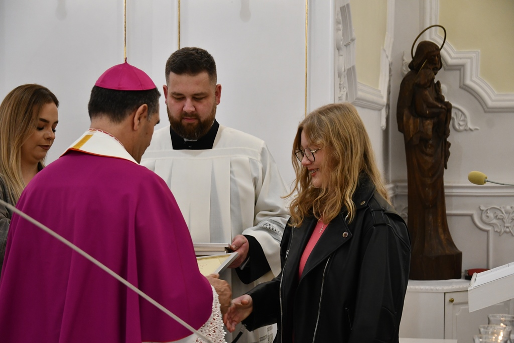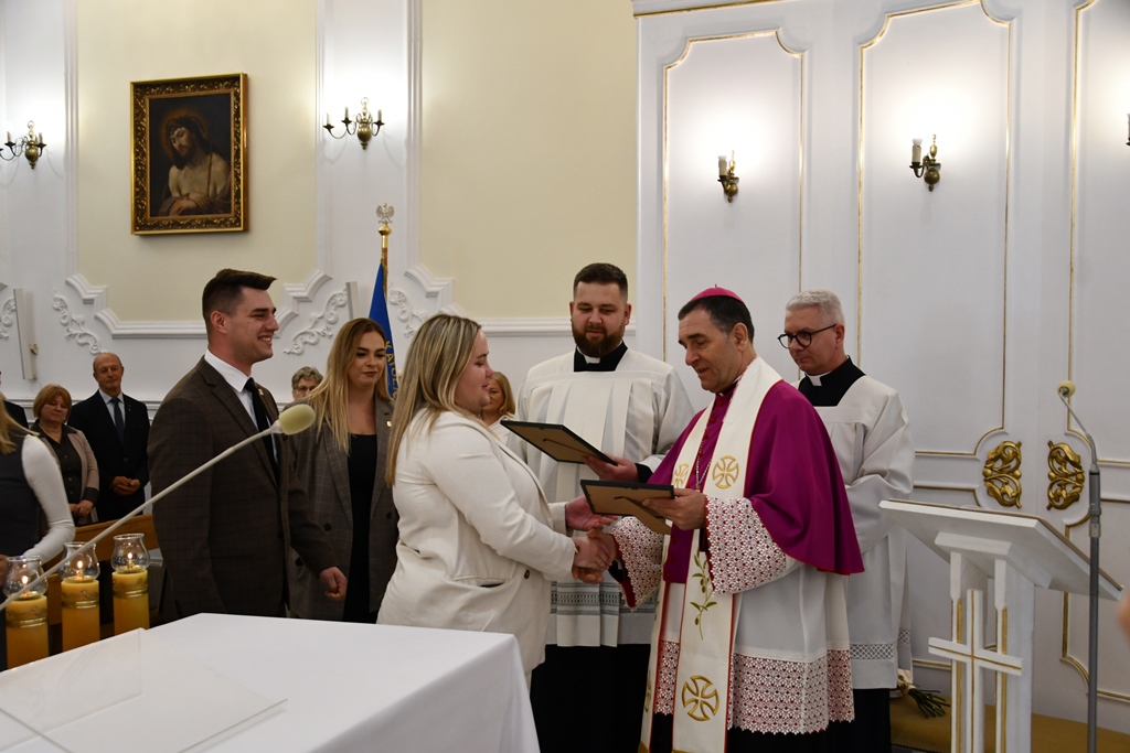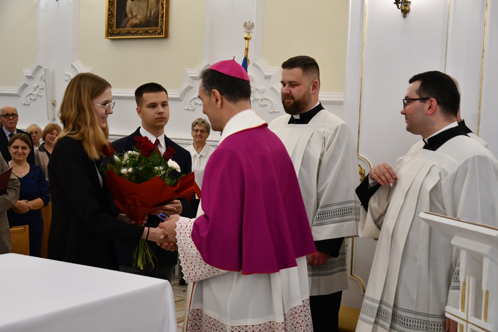 Z podobną prośbą zwrócili się do biskupa: prezes KSM Natalia Zielińska oraz asystent KSM ks. Maciej Domańszczyński. Magdalena Kurowska, Zuzanna Miszczuk. Dominika Pietraszko, Aleksandra Sakowicz oraz Rafał Stulgis złożyli swoje przyrzeczenia i w ten sposób stali się pełnoprawnymi członkami KSMu. Natomiast Gabriela Wrzosek stała się nową zastępową w strukturach stowarzyszenia. Młodzież do tego dnia przygotowywała się poprzez trzydniowe rekolekcje, które poprowadził ks. Michał Grupa. Biskup odmówił specjalną modlitwę i udzielił nowym członkom błogosławieństwa. Wręczył im również legitymację i odznaki.