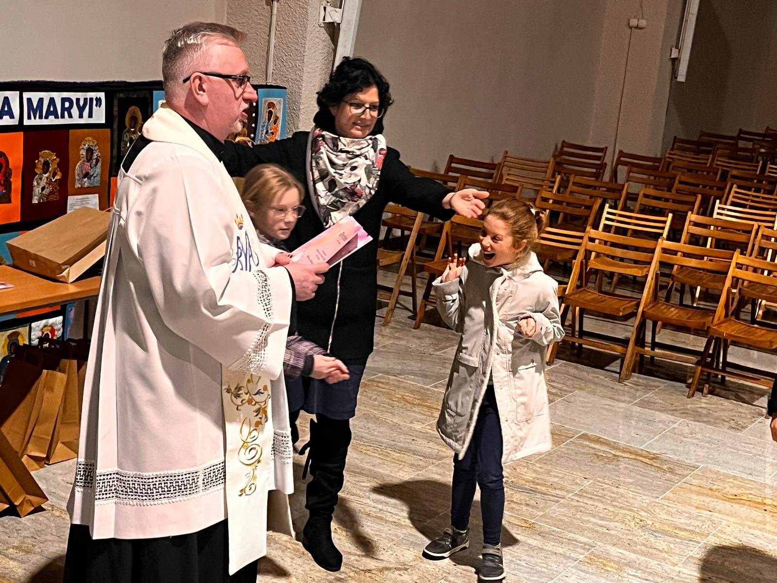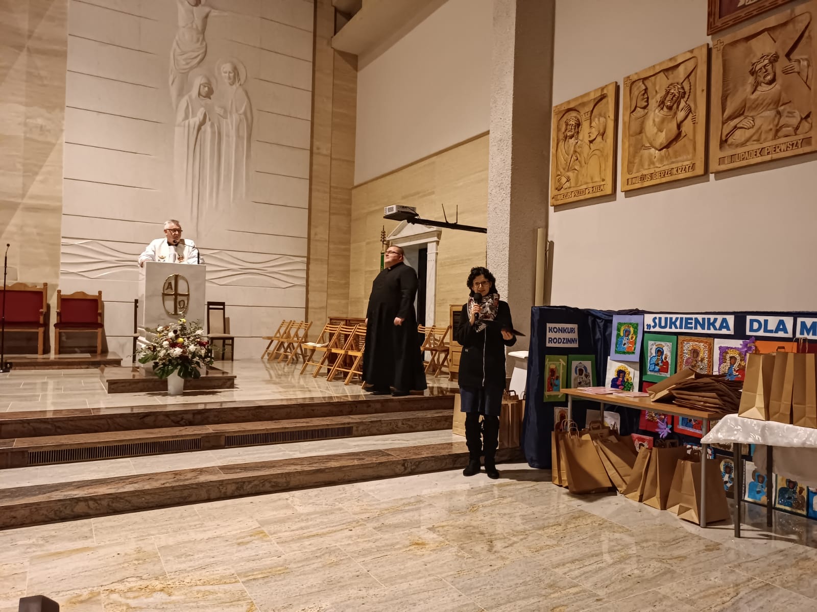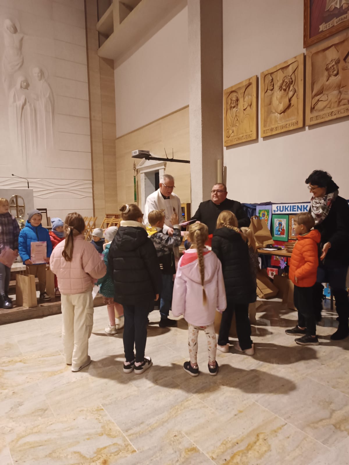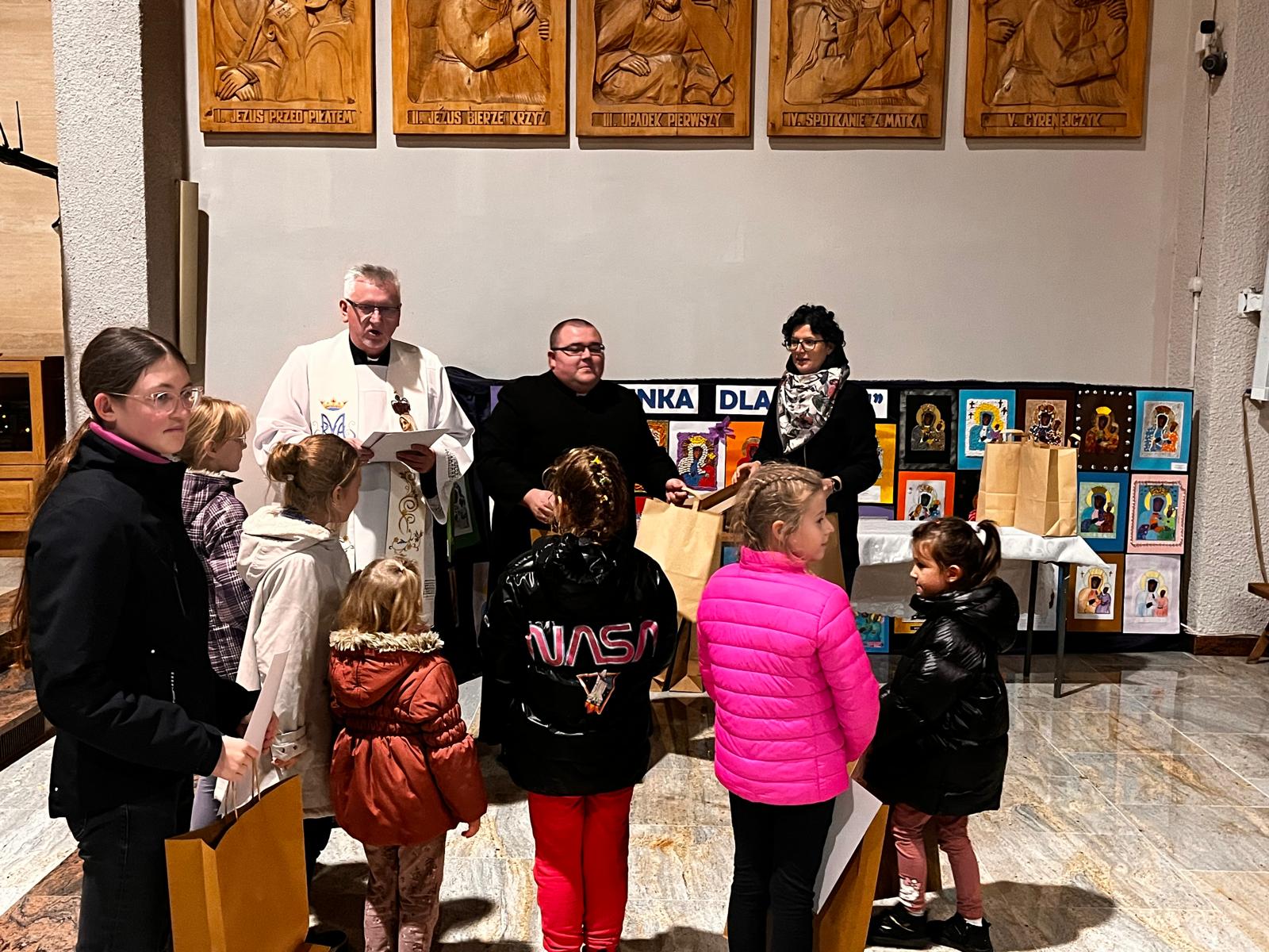 W finał konkursu poprowadzili we dwójkę ks. Roman Szmurło – proboszcz parafii oraz Paulina Białek – katechetka. Proboszcz, wyraził wielkie uznanie dzieciom, za prace artystyczne, które wykonali i wyraził nadzieję, że takie inicjatywny przyczynią się do wzrostu miłości ku Matce Bożej wśród najmłodszych. Następnie wraz z Pauliną Białek oraz ks. Beniaminem Sęktasem wręczyli wszystkim uczestnikom prezenty i podziękowania.