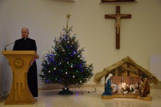 Fragment Ewangelii opowiadający o narodzinach Chrystusa odczytał Notariusz Kurii ks. kan. Jarosław Rzymski. W imieniu kapłanów sława życzeń ks. Biskupowi złożył proboszcz parafii Boćki ks. kan. Henryk Bałdyga. Nawiązał do obecnej, trudnej i niepewnej sytuacji pandemicznej. W tym kontekście podziękował ks. Biskupowi za stałą troskę, opiekę oraz życzliwość. Obecność Pasterza, jego nauczanie prowadzi przez trudy codzienności i umacnia w wierze. Jak zauważył posługa Biskupa wpisana jest w los Syna Bożego poprzez uświęcanie, nauczanie oraz kierowanie Ludem Bożym. Życzył zdrowia, jak również obfitości Bożych łask płynących od nowo narodzonego Chrystusa.