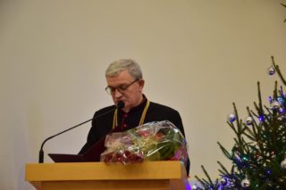 Zawracając się do obecnego ks. bpa Antoniego Dydycza oraz przybyłych kapłanów ks. Biskup życzył uśmiechu nowo narodzonego Jezusa, który odczytujemy w sercach, ponieważ on raduje się, kiedy kapłani stają się Jego narzędziami. W powierzonych sobie wspólnotach sprawiają, że Chrystus nieustannie rodzi się dla ludzi, jego słowo, miłość i miłosierdzie stają się bardziej dla nich dostępne. Życzył zdrowia, wytrwałości oraz głębokiego przekonania, że droga powołania jest miła w oczach Bożych, prowadzi do świętości oraz jest potrzebna każdemu człowiekowi.