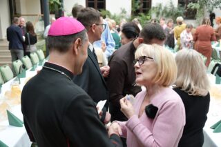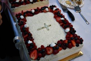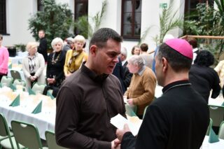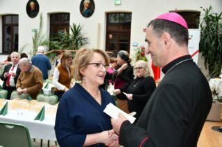 Kolejna część spotkania miała miejsce w wirydarzu. Wziął w niej udział bp Piotr Sawczuk. Zwracając się do przybyłych wyraził radość z dziesięcioletniej obecności i działalności wspólnoty na terenie diecezji drohiczyńskiej. Przedstawiciele wspólnoty złożyli świąteczno-noworoczne życzenia. Po odczytaniu fragmentu Ewangelii i modlitwie był czas na przełamanie się opłatkiem. Świętowanie miało swoją kontynuacje przy wspólnym stole. Nie zabrakło urodzinowego tortu.