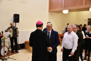 Odczytano fragment Ewangelii o narodzeniu Chrystusa, biskup pobłogosławił opłatki a następnie przełamując się nimi składano sobie wzajemnie życzenia. Ostatnim punktem spotkania była wspólna agapa.