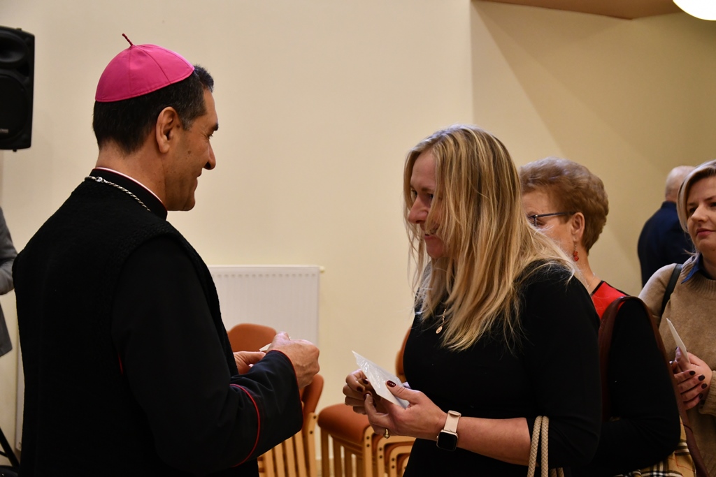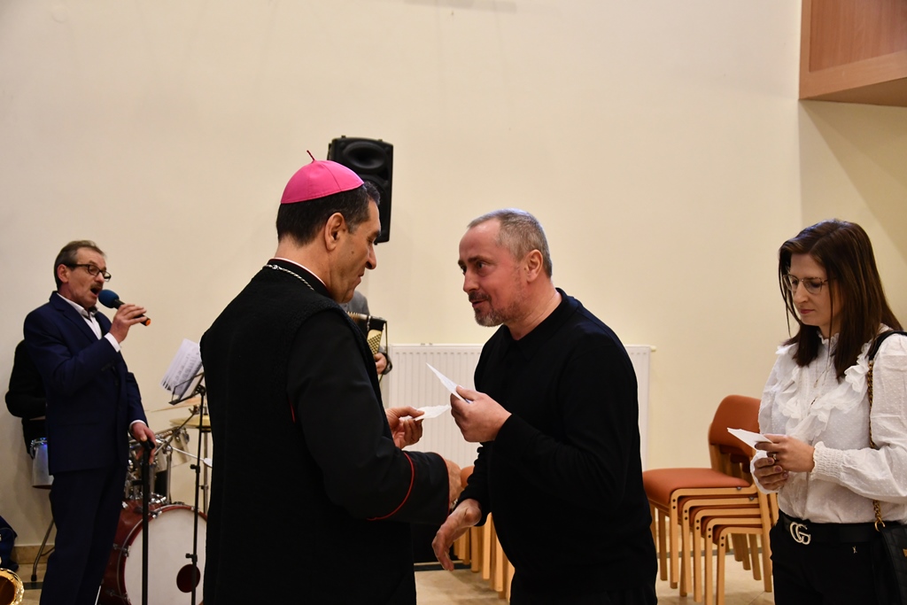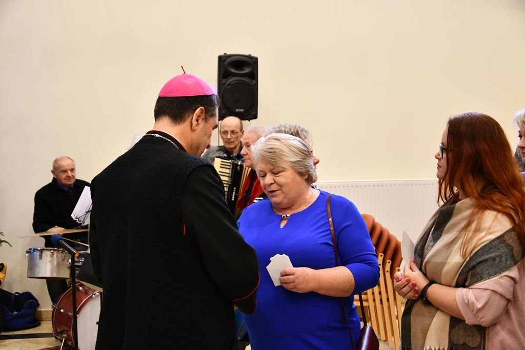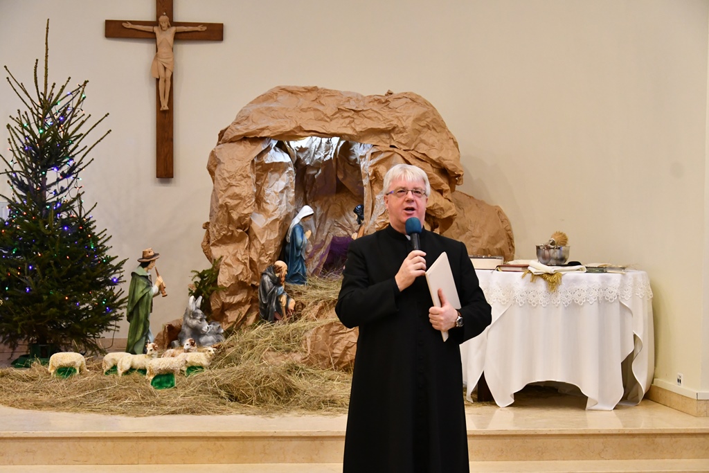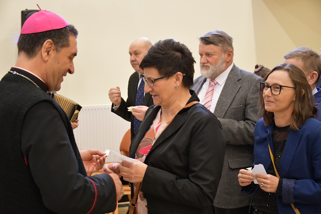 Odczytano fragment Ewangelii o narodzeniu Chrystusa, biskup pobłogosławił opłatki a następnie przełamując się nimi składano sobie wzajemnie życzenia. Ostatnim punktem spotkania była wspólna agapa.