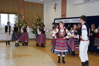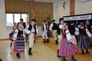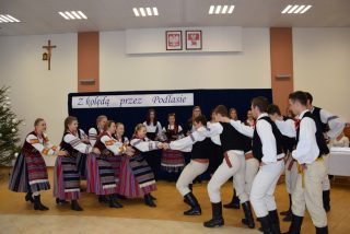 Spotkanie uświetnił występ szkolnego zespołu „Podlaskie Kukułki”, podczas którego uczestnicy mogli wysłuchać kolęd i podziwiać występy taneczne. Nie zabrakło czasu na dzielenie się opłatkiem i wspólną agapę.