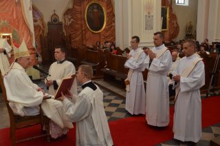 W pierwszą sobotę miesiąca, w katedrze drohiczyńskiej, wśród licznie zgromadzonych księży, sióstr zakonnych i rodzin alumnów, ks. bp Tadeusz Pikus udzielił święceń kapłańskich następującym diakonom: