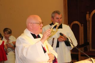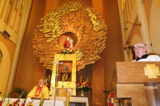 Święta Anna na znak prawdziwości tego objawienia zostawiła cztery wianki. Trzy były ze sobą połączone i miały symbolizować Trójjedynego Boga, a jeden na Jej pamiątkę. Wieńce, pozostawione podczas objawienia, umieszczono w skromnej srebrnej koronie, którą do dziś błogosławi się wiernych, nakładając ją na głowę pielgrzyma. Obrzęd ten nosi nazwę „koronacji”. Wyraził też radość, że mógł koncelebrować tę Eucharystię z papieżem Franciszkiem oraz zapowiedział, iż poświęcone korony zastaną uroczyście nałożone w uroczystość Trójcy Świętej.