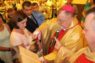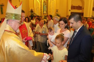 Ksiądz biskup udzielił też sakramentu chrztu świętego czwórce dzieci, przypominając o wielkości tego wydarzenia, które pozwoliło im wyjść ze świątyni innymi ludźmi, mającymi otwartą drogę do pozostałych sakramentów i stałą nadzieję na moc łaski Boga wspierającej w życiu.