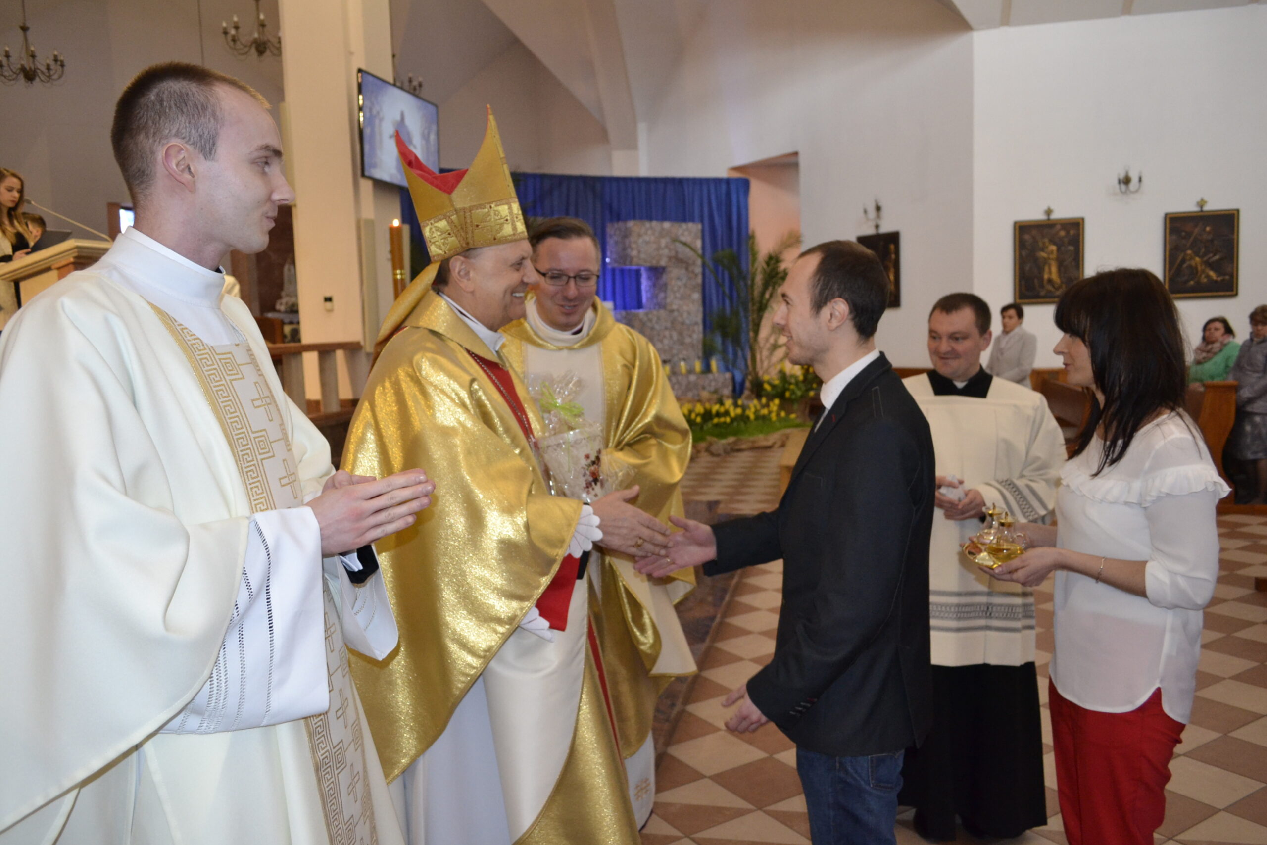 Kolejną częścią obchodów Święta Caritas była Msza święta pod przewodnictwem ks. bpa Tadeusza Pikusa w Sanktuarium Miłosierdzia Bożego, po której wszyscy zebrani goście udali się na obiad do Domu Miłosierdzia im. Jana Pawła II.