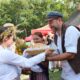 Istotnym punktem dnia była ceremonia dożynkowa. Orszak żniwny przeszedł przy dźwięku kapel ze starej zagrody na pole gdzie odbyły się pokazy żniwne – żęcie sierpem, koszenie kosą, tradycyjny odpoczynek i posiłek w polu, potem oborywanie przepiórki i przemarsz orszaku dożynkowego z pola pod dworek drobnoszlachecki, gdzie przekazano starostom wieniec dożynkowy.