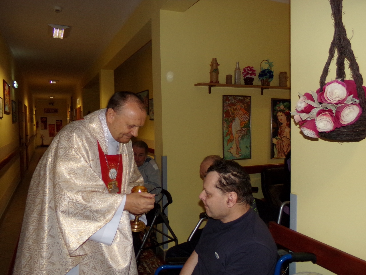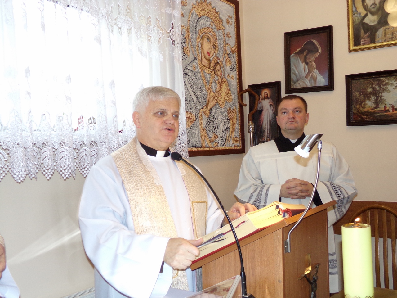Do wspólnoty mieszkańców i pracowników domu modlących się wraz z ks. Biskupem i kapelanem ks. kan. Jarosławem Kuźmickim dołączył dziekan siemiatycki ks. kan. Roman Szmurło, ks. prał. Bogusław Kiszko i ks. Tomasz Szmurło. Witając zgromadzonych ks. Jarosław Kuźmicki przypomniał wiernym, że św. Łukasz Ewangelista, którego wspomina Kościół, był lekarzem. Poprosił też, by Msza św. sprawowana była nie tylko za pracowników Domu Pomocy Społecznej, ale za służbę zdrowia całej diecezji drohiczyńskiej. Jednocześnie zapraszał, by wszyscy posługujący chorym, będący z chorymi włączyli się do wspólnej modlitwy.