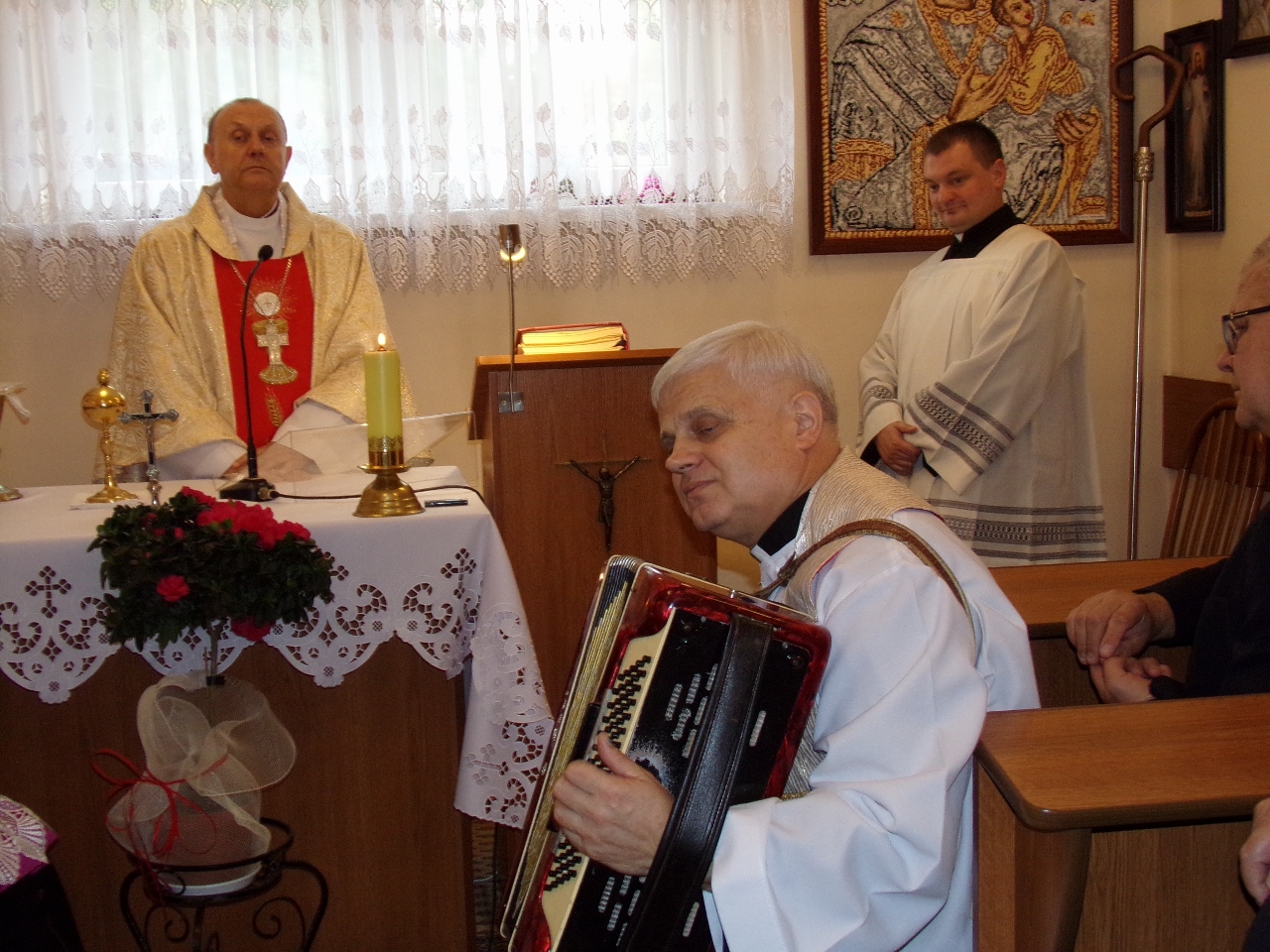 Na koniec, dziękując za spotkanie i wspólną Mszę św., jeden z mieszkańców domu przy akompaniamencie księdza kapelana zaśpiewał pieśń, w której wyśpiewał wielką tęsknotę do Matki Bożej.
