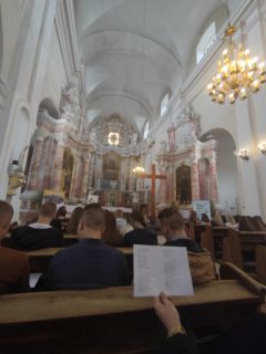 Te symbole 23 sierpnia gościły w Drohiczynie. Wspólnie z młodzieżą oazową i ks. Maciejem Domańszczyńskim – który przybył wraz z młodzieżą z Sarnak, powitawszy symbole odmówiliśmy modlitwę południową. Ksiądz dziekan Wisław Niemyjski przestawił historię Kościoła pofranciszkańskiego, a następnie poprzez modlitwę różańcową oddaliśmy w opiekę Matki Bożej młodzież naszej diecezji – zawierzając cały rozpoczynający się rok szkolny i katechetyczny. Następnie pod przewodnictwem ks. Michała Siduniaka, oraz ks. Łukasza Suszko – Diecezjalnego Moderatora Ruchu Światło Życie została odprawiona Eucharystia. O 15.00 zarząd KSM-u diecezjalnego wraz z prezesem P. Mateuszem Stefaniukiem powierzył Bożemu Miłosierdziu w koronce młodzież naszej diecezji oraz rozpoczynający się rok. O godz. 17.00 Oaza poprowadziła adorację Jezusa obecnego w Najświętszym Sakramencie, Krzyża i Ikony Matki Bożej.