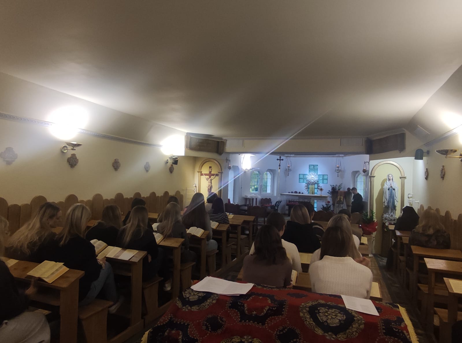 Podczas rekolekcji gościliśmy: s. Gemmę Misiuk (Siostra Loretanka) pracującą w redakcji Miesięcznika „Różaniec” wydawanego przez Siostry Loretanki a pochodzącą z niedalekiej parafii w Kleszczelach. S. Gemma przedstawiła historię życia założycielki Stowarzyszenia Żywy Różaniec – bł. Pauliny Jaricot oraz samą ideę modlitwy różańcowej w Różach różańcowych.