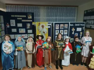 W dniach poprzedzających Uroczystość Wszystkich Świętych uczniowie  na katechezach zostali zapoznani z postaciami wielu osób wyniesionych na ołtarze oraz ich życiem na ziemi, przepełnionym wiarą i miłością do Boga i ludzi. W myśl nauczania Jana Pawła II: „ święci są nie po to, by ich podziwiać, ale po to, by ich naśladować”, dzieci zostały zachęcone do pogłębiania wiedzy o różnych świętych i naśladowania ich w swoim życiu.