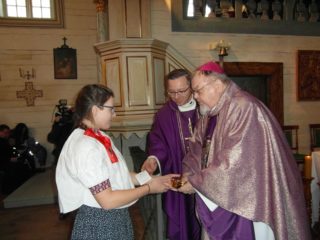 W homilii ks. Biskup zwracał uwagę na przeżywany czas Adwentu, który zachęca nas do radości i cierpliwego oczekiwania – Adwent mówi o przyjściu Syna Bożego oczekiwanego od wieków. Czas Adwentu określają cztery niedziele poprzedzające Boże Narodzenie. W tym okresie częściej staramy się modlić, pamiętamy aby śpiewać godzinki do Matki Bożej, brać udział we Mszach Świętych Roratnich i skorzystać z rekolekcji adwentowych. Wszystkie te praktyki religijne maja na celu oczyszczenie naszych sumień i pogodniejsze oczekiwanie na przeżycie kolejnej rocznicy narodzin Pana Jezusa. Dalej kaznodzieja podkreślał, że naszym przygotowaniom do Bożego Narodzenia towarzyszy muzyka, melodie i słowa rozbrzmiewające w kościołach. – Pieśń zajmuje szczególne miejsce w przeżywaniu Adwentu, a obok melodii religijnych powstają pieśni świeckie, jednak zawsze sprzyjające klimatowi duchowemu, kulturowo zakorzenionemu w ludowych melodiach o patriotycznym wydźwięku. Biskup upominał, że należy dbać o wysoką jakość tekstów i melodii pojawiających się w kościele. Mówca wiele miejsca poświęcił ligawkom przypominając ich historie, a nade wszystko fakt, że dźwięk tego prostego instrumentu nierozerwalnie związany jest z czasem Adwentu i przypomina o zbliżających się narodzinach Syna Bożego.