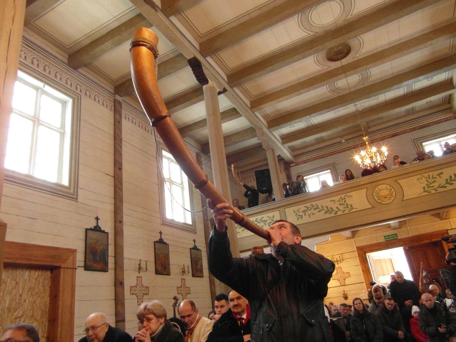 Eucharystia celebrowana w zabytkowym kościele pw. Wszystkich Świętych znajdującym się na terenie skansenu była zwieńczeniem konkursu związanego z trwającym w Kościele Adwentem. Mszy św. przewodniczył ks. bp Antoni Dydycz. W koncelebrze uczestniczył ks. kan. Łukasz Gołębiewski. We wspólnej modlitwie w tym adwentowym czasie uczestniczyli instrumentaliści z całej Polski i zagranicy – z Kurpi, Lubelszczyzny, Mazowsza, Mazur, Podlasia, Suwalszczyzny, Kaszub, Beskidu Śląskiego, Podhala, Wielkopolski oraz Litwini i Ukraińcy. Dołączyli do nich mieszkańcy Ciechanowca i okolicznych miejscowości a także przedstawiciele władz – Marszałkowie, Starostowie, Burmistrzowie Wójtowie inni samorządowcy.