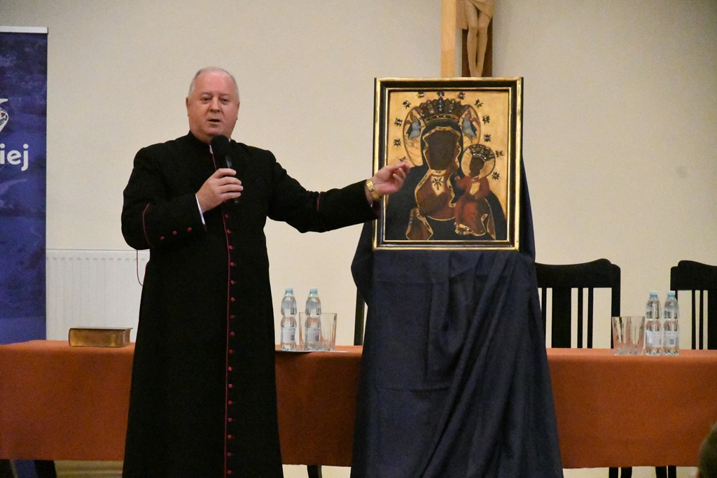 Tak jak pierwszy prelegent prezentował postać pierwszego króla Polski, tak ostatni skupił się na królowej, którą od wieków jest Matka Najświętsza. „Synu oto Matka Twoja – studium historyczno-teologiczne wizerunku Matki Bożej Częstochowskiej” – to tytuł wystąpienia ks. prał. dr. Zbigniewa Rostkowskiego. Prelegent nie tylko wyjaśnił, jakie przesłanie niesie ta podobizna Matki Bożej, ale również podzielił się osobistym i rodzinnym świadectwem obecności ikony Matki Bożej Jasnogórskiej w jego rodzinnym domu. Słuchacze mogli lepiej zrozumieć symbolikę obrazu, treści i znaczenie użytych kolorów, przestawionych na ikonie postaw i gestów Maryi i Jezusa.