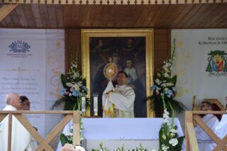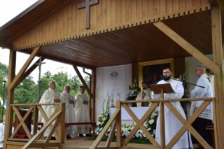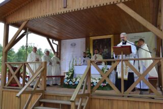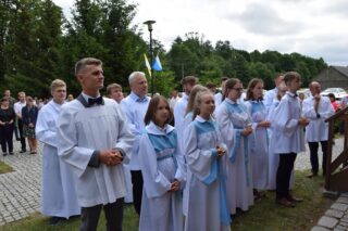 W słowach powitanie kustosz Sanktuarium wskazał na obecność pocztu sztandarowego Solidarności o/ Siemiatycze, która na sztandarze ma wizerunek Matki Bożej Ostrożańskiej. – Witam wszystkich, którzy przybyli by pokłonić się naszej Matce i Królowej, niech Maryja przytula was mocno do serca i wyprasza potrzebne łaski.