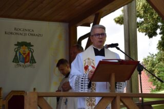 W kazaniu biskup Piotr Sawczuk przypomniał historię koronacji poprzedzonej szeroko zakrojonymi przygotowaniami duchowymi. Biskup podkreślał: – Koronacja miała miejsce dwa lata przed nadejściem wolności i zakończeniem epoki komunistycznego zniewolenia. A jeśli wolność przyszła w roku 1989, to między innymi dlatego, że wielkie było jej pragnienie w Polakach, że wielka była ich miłość do Maryi i że tchnienie Ducha Świętego wezwanego przez św. Jana Pawła II podczas pierwszej pielgrzymki do Ojczyzny ku odnowie polskiej ziemi, stawało się coraz bardziej widoczne. Do matki ziemskiej idzie się zawsze, w każdej życiowej sytuacji. Do Matki z nieba tak samo. Gdy jest ciężko, szuka się u Niej zrozumienia, pociechy i ratunku, a gdy Duch pozwala rozwinąć skrzydła, szuka się u Niej rady i słucha z uwagą podpowiedzi, by nie wziąć wolności jako zachęty do hołdowania wartościom fałszywym.