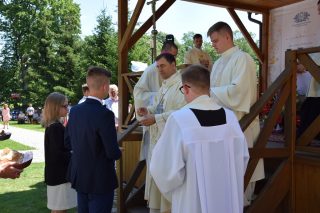 Podczas uroczystej Eucharystii celebrowanej na ołtarzu polowym 5 lipca 2020 r. przed sanktuarium maryjnym w Ostrożanach obchodzono 33. rocznicę koronacji Cudownego Obrazu Matki Bożej Ostrożańskiej. Mszy św. przewodniczył bp Piotr Sawczuk.