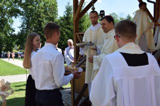 Kustosz sanktuarium ks. Piotr Wójcik wyraził radość z obecności Ekscelencji oraz tak licznie przybyłych wiernych, którzy pomimo panujących utrudnień, zdecydowali się m.in. przyjść pieszo. Wśród nich byli pielgrzymi z parafii: Ciechanowiec, Grodzisk, Drohiczyn, Dziadkowice, Kłopoty Stanisławy, Miłkowice Maćki, Perlejewo, Siemiatycze, Śledzianów. Kustosz parafii przypomniał także o przeżywanej 60. rocznicy śmierci ks. Jana Audera, wielkiego czciciela Matki Bożej i przyjaciela ludu, który spoczywa obok sanktuarium.