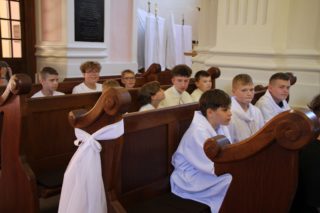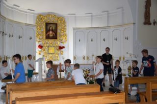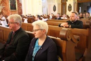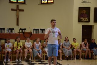 Zgromadzeni zostali zaproszeni do wzięcia aktywnego udziału w programie zaproponowanym przez Ks. Piotra Jarosiewicza oraz ks. Mateusza Gołosia. O godzinie 10 rozpoczęły się zajęcia w trzech grupach tematycznych: Ministranci i Lektorzy, Schole parafialne oraz Młodzież.