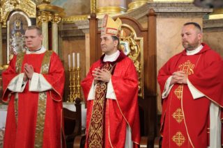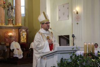 W homilii skierowanej do zebranych bp Piotr mówił: „Zgromadziliśmy się w naszej katedrze, aby z wdzięcznością wspomnieć 23 rocznicę wizyty apostolskiej św. Jana Pawła II w Drohiczynie, tego niebywałego zaszczytu, jakiego wówczas dostąpiło nasze miasto i nasza diecezja i za który winniśmy serdecznie dziękować Bożej Opatrzności”. Pasterz nawiązując do słów z I czytania z I Księgi Królewskiej ukazywał, jak zaskakujące są działania Pana Boga, który przychodzi do proroka Eliasza w szmerze łagodnego powiewu. „Bóg pokazuje, że znacznie bliżej Mu do łagodności, cierpliwości i przebaczenia, niż do metod nieprzebierających w środkach, byleby były skuteczne, byleby doprowadziły do celu”. Pasterz przypomniał te słowa w kontekście wojny na Ukrainie. „Używanie siły trzeba potępić, gdy celem agresji jest wola narzucenia drugiemu swojej władzy odebranie mu wolności i zabór jego mienia”.