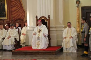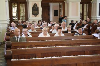 Dzień Wspólnoty Dorosłych zakończył się adoracją Najświętszego Sakramentu, prowadzoną przez Szkołę Nowej Ewangelizacji św. Józefa. Prowadzący  – ks. Mateusz Roguski – przypomniał słowa, które rozpoczęły II Sobór Watykański – „Kościele, co mówisz sam o sobie?” Postawił to pytanie także naszej diecezji. Jednocześnie cytując księgę Apokalipsy św. Jana pokazał, że Pan Bóg ciągle mówi i chce mówić do Kościoła. Postawa słuchania jest Kościołowi nieustanne potrzebna, aby nie zbłądził. Adoracja była wielką modlitwą prośby, o łaski potrzebne dla całej diecezji.