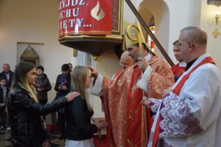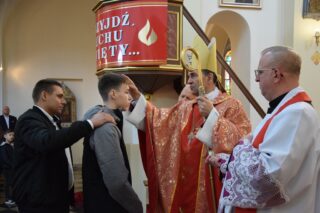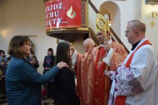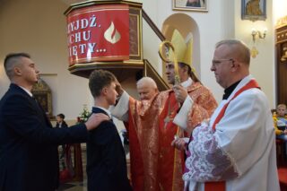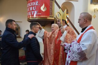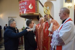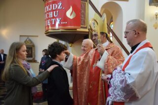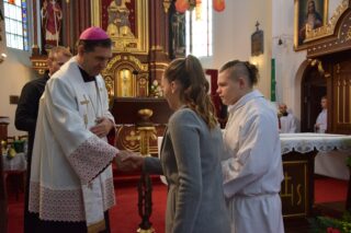 Ważnym momentem było spotkanie ks. Biskupa z przedstawicielami różnych ruchów i stowarzyszeń działających na terenie parafii. Na jego ręce złożyli sprawozdania ze swojej działalności i w krótkich słowach opowiedzieli o podejmowanych inicjatywach. Biskup podziękował za ich zaangażowanie, szczególnie za dbałość o duchowy profil parafii. Podczas kolejnej Eucharystii Pasterz diecezji udzielił sakramentu bierzmowania sześćdziesięcioczteroosobowej grupie kandydatów. Na tę Mszę św. przybyli kapłani z dekanatu węgrowskiego na czele z jego dziekanem ks. prał. Leszkiem Gardzińskim oraz inni zaproszeni księża. W przeżywaniu liturgii wiernym pomagał śpiewem chór parafialny pod kierunkiem organistki Magdaleny Borkowskiej. Koło różańcowe działające w parafii przekazało ks. Biskupowi Margaretkę zapewniając o nieustannej modlitwie w jego intencji. Podobny dar modlitewny otrzymał nowy wikariusz parafii ks. Piotr Śledź.
