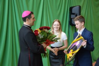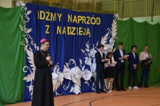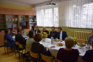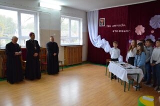 Pasterz diecezji odwiedził Zespół Oświatowy w Toporze, któremu patronuje bł. kard. Stefan Wyszyński. W przygotowanej pod okiem wychowawców części artystycznej uczniowie przypomnieli życie i nauczenie Prymasa Tysiąclecia. Spotkanie przy słodkim poczęstunku było okazją do rozmowy z nauczycielami i pracownikami szkoły.