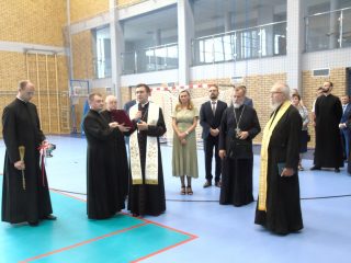 Pobłogosławienia obiektu w asyście licznie przybyłych duszpasterzy katolickich i prawosławnych dokonali ks. bp Piotr Sawczuk oraz dziekan prawosławny ks. mitrat Leoncjusz Tofiluk. Pasterz diecezji, życzył uczniom sukcesów w nauce. Akcentował równoważenie potrzeb duchowych z potrzebami fizycznymi, które wymagają nieraz znacznego wysiłku w ich zdobywaniu. Przypomniał anegdotyczne słowa św. Jana Pawła II wypowiedziane dziennikarzom zapytany co sadzi o futbolu. Papież odpowiedział, że wśród rzeczy mniej ważnych najważniejszą jest piłka nożna.