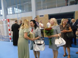 Uroczystość miała podwójny charakter. Najpierw na auli szkolnej miało miejsce powitanie gości, przemówienia, w tym dyrektor Marzeny Pogorzelskiej Ciołek, wręczenie pucharów najlepszym sportowcom i akademia szkolna, a następnie przecięcie wstęgi przez ks. Biskupa, przedstawicieli władz samorządowych, oświatowych, poświęcenie hali i mecz w piłkę siatkową pomiędzy reprezentacją z Białej Podlaskiej i zespołem z Brześcia.