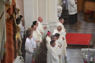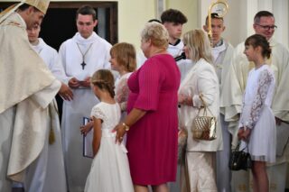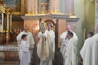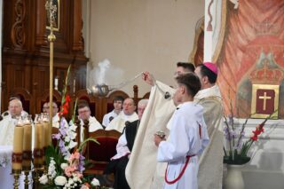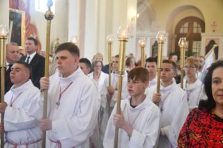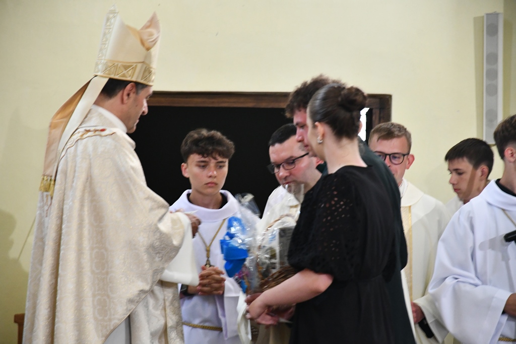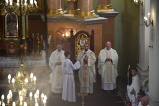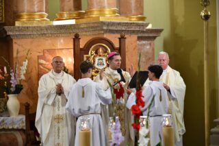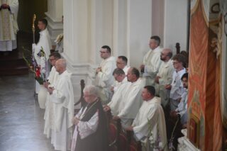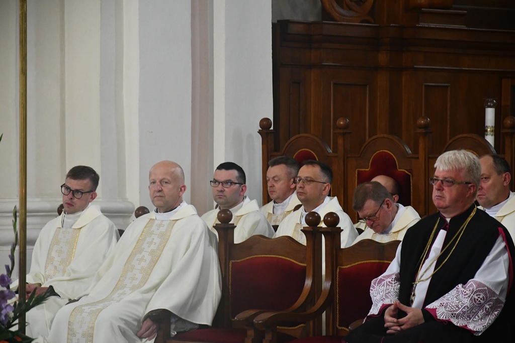 Przed rozpoczęciem liturgii miała miejsce modlitwa różańcowa, którą poprowadzili przedstawiciele Kół Żywego Różańca. Ich modlitwa była szczególnym wyrazem duchowego wsparcia i wdzięczności wobec Pasterza diecezji – z prośbą o dalsze łaski oraz opiekę świętych patronów. Uroczystości towarzyszyła również oprawa muzyczna przygotowana przez chór pod przewodnictwem pani Magdaleny Murawskiej, Zuzanny Krzywdy i pana Sebastiana Skrzypkowskiego.
