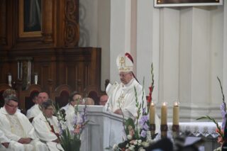 Homilię wygłosił bp Tadeusz Pikus, który przybliżył sylwetki św. Piotra i św. Pawła – niezłomnych świadków wiary i filarów Kościoła. W kontekście ich życia i świadectwa złożył życzenia Solenizantowi, prosząc dla niego o dary Ducha Świętego, opiekę świętych patronów oraz siłę do dalszego przewodzenia diecezji w duchu jedności i wierności Ewangelii.