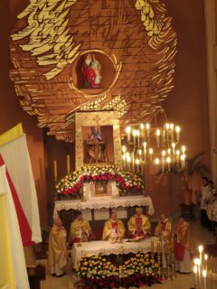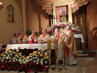 Zwieńczeniem 40-godzinnego nabożeństwa była Msza św. w poniedziałek o godz. 12.00, podczas której odbyła się rocznica Pierwszej Komunii św. dzieci z klas III. Uroczystościom przewodniczył ks. prał. Czesław Mazurek, który 54 lata temu w Prostyni rozpoczynał swoją kapłańską posługę. Wraz z nim celebrował ją ks. kan. Krzysztof Maksimiuk. Kazanie wygłosił ks. Mariusz Boguszewski.