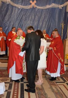 W dzień patronów – św. Apostołów Piotra i Pawła, przedstawiciele śledzianowskiej parafii przywitali ks. bpa Tadeusza Pikusa oraz podziękowali za obecność oraz przewodniczenie uroczystościom. Słowa powitania oraz podziękowania skierował także ks. Krzysztof Kościelecki – proboszcz parafii, który przywołał wybitną postać ks. bpa Zygmunta Łozińskiego, nazywanego biskupem odrodzonej ojczyzny, oraz swoich poprzedników noszących imię – Piotr i Paweł.