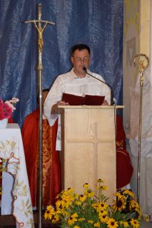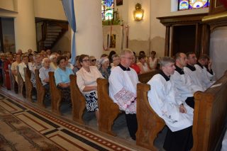 W wygłoszonej homilii Ekscelencja przywołał postać św. Piotra i Pawła, którzy pomimo różnych statusów społecznych i poziomu wykształcenia dali świadectwo wiary. ,,Żeby poznać Kościół w jego prawdzie, potrzeba być w jego wnętrzu” – powiedział ks. bp Tadeusz Pikus. Dla lepszego zobrazowania przytoczonego stwierdzenia, Ekscelencja porównał witraże do ludzi. ,,Ci którzy są zewnątrz kościoła, zobaczą pręty, plamy, zaś osoby wewnątrz, ujrzą witraże pełne blasku i okazałości padającego światła. Osoby z zewnątrz będą oglądać Kościół przez pryzmat cieni, wad, braków. Natomiast osoby wewnątrz Kościoła mają światło, pozwalające dostrzec kolory i blask jakim jest wiara” – podkreślił. Ks. Biskup wskazał jedyne, słuszne rozwiązanie: ,,Jeżeli przyjmiemy miłość Bożą, to nie będziemy widzieli tyko prętów, palm i cieni, ale zobaczymy prawdziwe światło, którym jest Jezus Chrystus. Na zakończenie ks. Biskup zachęcił do oglądania witraży wewnątrz kościoła, które symbolizują wspólnotę osób wierzących.