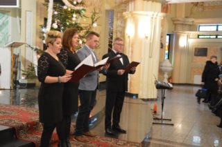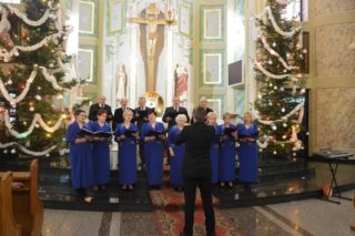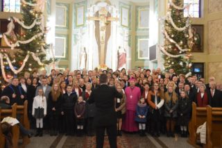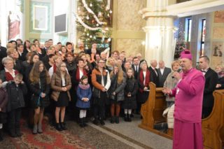Na zakończenie wszystkie połączone chóry wraz z ks. bpem Tadeuszem Pikusem i pod  dyrygenturą Sebastiana Skrzypkowskiego wykonały 3 kolędy. Po wspólnym kolędowaniu ks.  Biskup skierował do zebranych słowo i udzielił błogosławieństwa. Następnie wszyscy udali się na poczęstunek do sali przy plebanii.