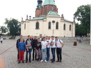 Trzydniową pielgrzymkę rozpoczęliśmy od zwiedzenia kościoła w Strzelnie pw. Świętej Trójcy i Najświętszej Marii Panny oraz rotundy św. Prokopa, w której czterech ministrantów zaśpiewało utwór w języku łacińskim, sprawdzając w ten sposób doskonałą akustykę tego miejsca. Następnie przejechaliśmy do Gniezna, gdzie zwiedziliśmy katedrę św. Wojciecha. Udaliśmy się także do kościoła i klasztoru Franciszkanów, gdzie spotkaliśmy się z O. Stanisławem Ulaczykiem, wieloletnim kapłanem naszej diecezji. Dzięki jego uprzejmości mogliśmy zapoznać się z historią miejsca i zobaczyć część klasztoru.