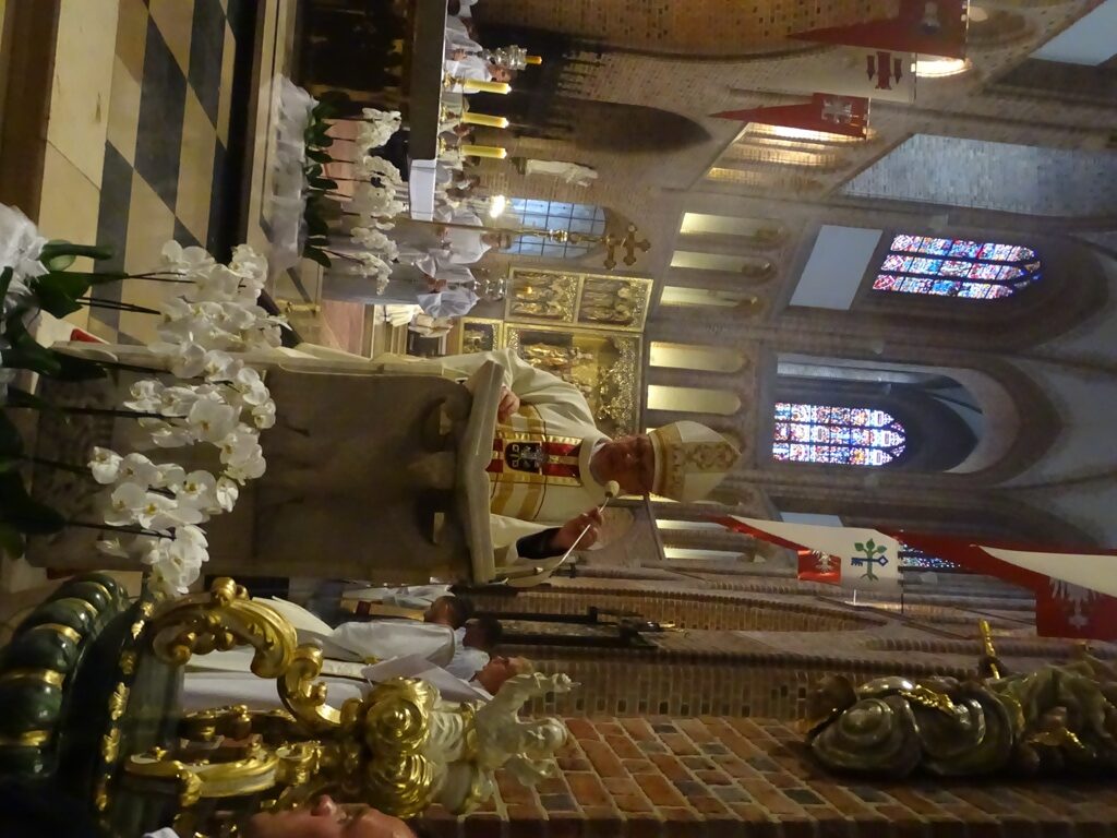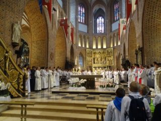 Następnym miejscem naszego pielgrzymowania był Poznań. Spotkanie ogólnopolskie rozpoczęliśmy od odwiedzenia kościołów stacyjnych: Bazylika św. Józefa ojców karmelitów, Kościół NMP Wspomożenia Wiernych, Kościół Najświętszej Krwi Pana Jezusa i Kościół Farny. W kościele Fary przygotowaliśmy się do Marszu z Jezusem ulicami Poznania. Po dotarciu do Poznańskiej Katedry uczestniczyliśmy we Mszy św. pod przewodnictwem abp. Józefa Górzyńskiego. Celebrans w homilii podkreślił, że miejsce tegorocznej pielgrzymki ministrantów nie jest przypadkowe. Zauważył, że w Poznaniu miały miejsce początki polskiej państwowości i początki Kościoła w Polsce. „Cała historia Polski i Polaków to historia uczenia się nauki Chrystusa i wprowadzania jej w życie” – stwierdził kaznodzieja. Przypomniał młodym pielgrzymom, że ich zadaniem jest realizacja wezwania: idźcie i głoście oraz bycie sługami Chrystusa w liturgii.