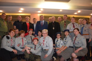 Podczas uroczystości ks. bp Tadeusz Pikus został odznaczony Złotą Chorągwianą Odznaką „Zasłużony dla ZHP na Białostocczyźnie””
