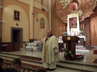 W bazylice prostyńskiej o godz. 10.30 odprawiona została Msza Święta, w której wzięli udział uczniowie i nauczyciele ze szkół podstawowych w Kiełczewie, Orzełku i Prostyni. Podczas Eucharystii modlili się za wstawiennictwem św. Stanisława o potrzebne łaski w nowym roku szkolnym. Kazanie do zebranych skierował ks. Józef Poskrobko, który przybliżył życiorys św. Stanisława Kostki i zwrócił uwagę na najważniejsze wartości, jakimi kierował się święty w swoim życiu. W oprawę nabożeństwa włączyła się młodzież czytając lekcję i modlitwę wiernych oraz śpiewając psalm. Po zakończeniu Eucharystii wszyscy udali się do pobliskiej remizy strażackiej, gdzie przedstawiciele parafialnego Domowego Kościoła i rodzice przygotowali poczęstunek: ciepłą kiełbaskę, słodkie ciasta i zimne napoje. Tę część uroczystości rozpoczęła wspólna modlitwa. Po posiłku był czas na obejrzenie niezapomnianego filmu „Król lew”, nad projekcją którego czuwał ks. Maciej Domaszczyński, wikariusz prostyński. Deszczowa pogoda nieco popsuła plany tego radosnego dnia, bo piknik miał odbyć się na dworze. Dopisały natomiast humory i apetyty. W dniu świętego Stanisława była i modlitwa i zabawa!