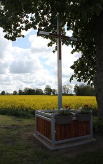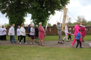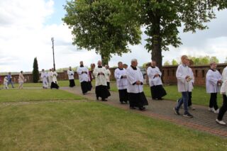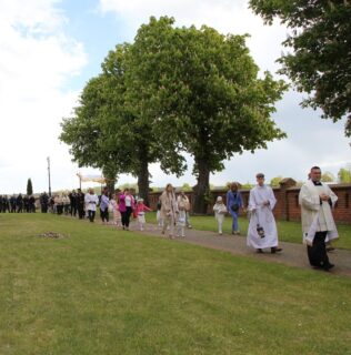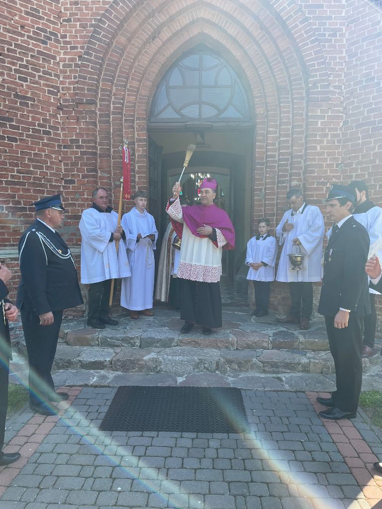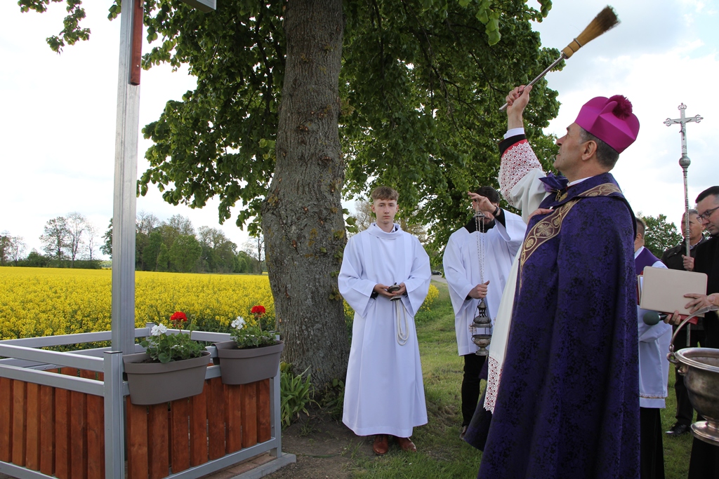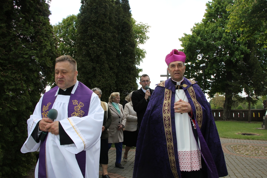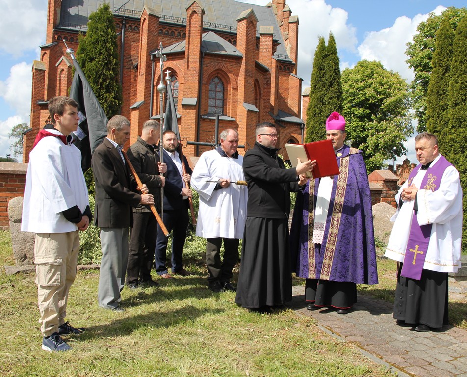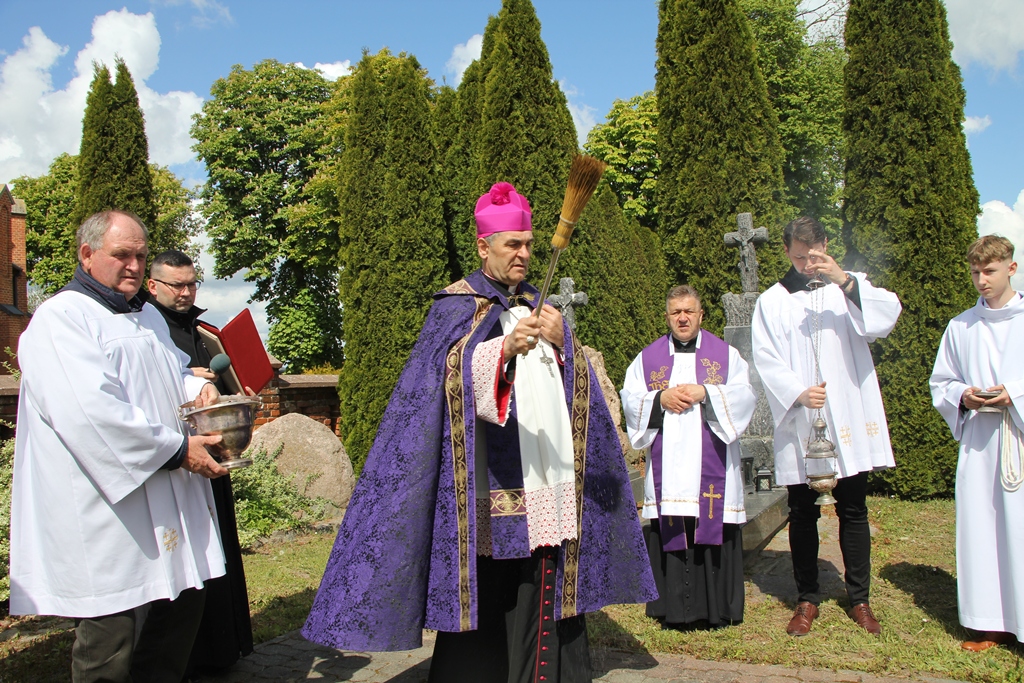 Po zakończonej liturgii wyruszyła procesja na cmentarz parafialny, gdzie modlono się za wszystkich zmarłych parafian. Biskup wyraził wdzięczność za troskę o to święte miejsce pamięci. W drodze powrotnej odbyło się poświęcenie nowego krzyża. Pasterz diecezji podziękował wszystkim, którzy przyczynili się do jego odnowienia — zarówno ofiarodawcom, jak i wykonawcom — doceniając ich wkład duchowy i materialny.